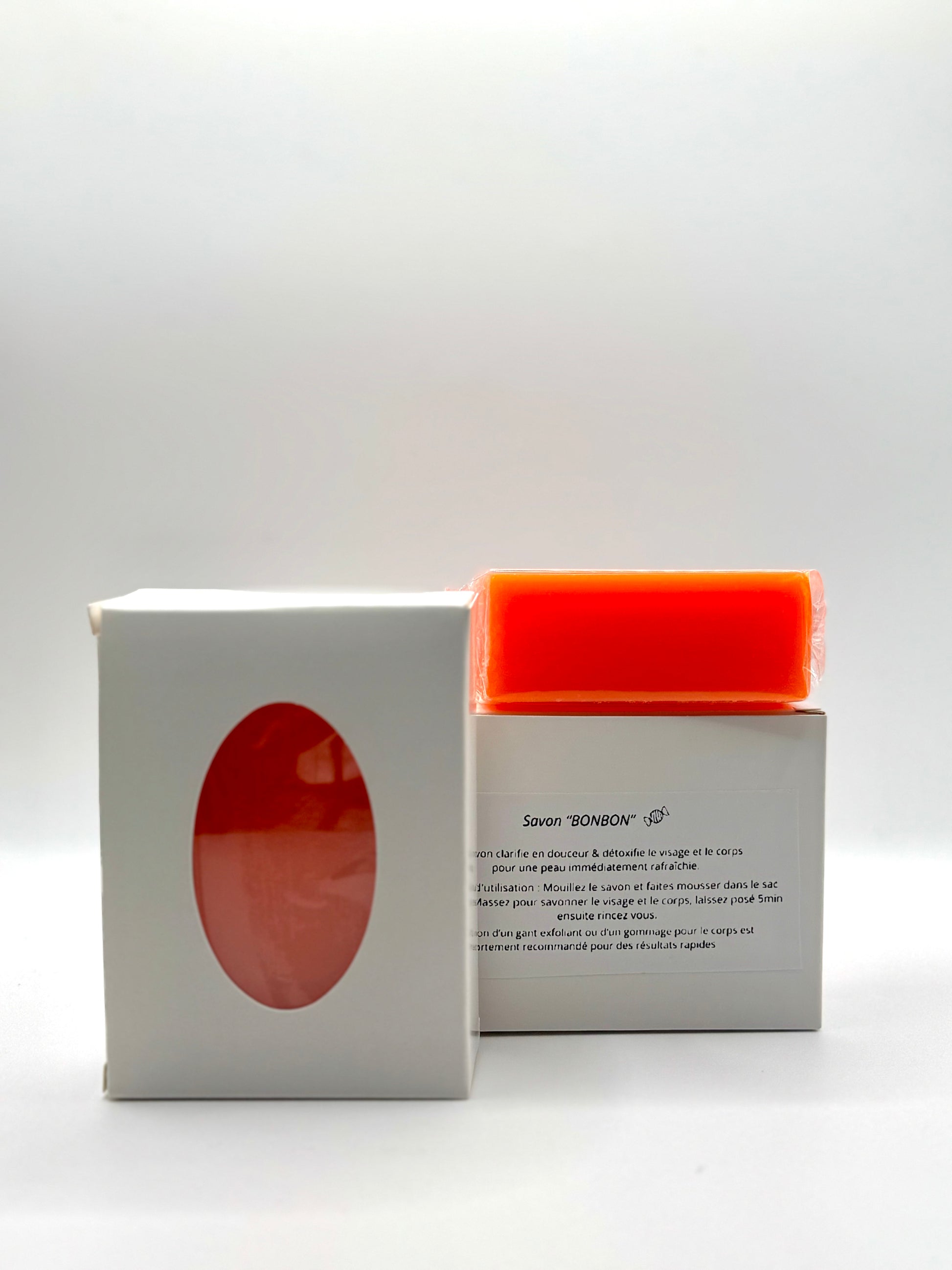 Conseil d'utilisation : Mouillez le savon et faites mousser dans le sac fournie. Massez pour savonner le visage et le corps en insistant sur les zones plus sombre, laissez posé 5min ensuite rincez vous.